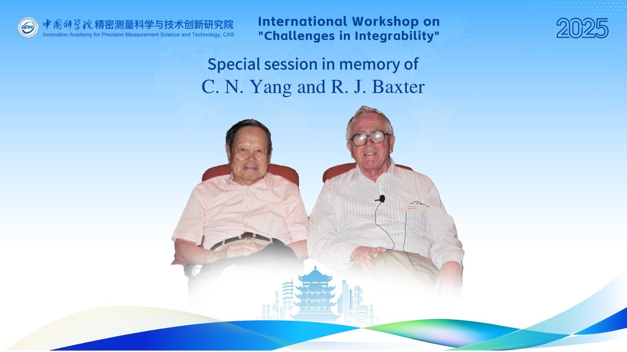 在开幕式上,中科院精密测量院党委书记、副院长柳晓军致欢迎辞,介绍了单位总体发展概况及原子分子物理领域的研究进展。来自美国、欧洲、亚太等12个国家和地区的38位数学物理专家作了大会报告,其中包括22位国外专家。与会专家涵盖数学物理、凝聚态物理、高能物理和原子分子物理等领域,多位为美国科学院院士、物理学会会士、昂萨格奖获得者等世界顶尖学者,大家围绕相关研究开展了深入交流。本次研讨会特别设立了纪念杨振宁先生与罗德尼·巴克斯特教授的专场报告会。杨振宁先生(诺贝尔奖获得者)与罗德尼·巴克斯特先生(昂萨格奖、英国皇家奖章获得者)是量子可积理论的开创者,他们共同奠基的杨-巴克斯特方程为该领域奠定了基石。2025年,两位先生相继离世,是世界科学界的重大损失。中国科学院院士叶朝辉、王玉鹏、林海青出席了报告会。会上,林海青院士、M. Batchelor教授、施郁教授、翟荟教授、顾正澄教授、V. Korepin教授、P. Wiegmann教授分别作了专题报告,共同回顾了两位先驱崇高的科学境界、高尚的师者风范与不朽的学术贡献。
