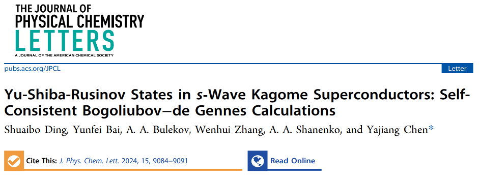 Shuaibo Ding, Yunfei Bai, A. A. Bulekov, Wenhui Zhang, A. A. Shanenko, and Yajiang Chen∗, Yu-Shiba-Rusinov States in s-Wave Kagome Superconductors: Self-Consistent Bogoliubov–de Gennes Calculations, J. Phys. Chem. Lett. 15, 9084-9091 (2024).